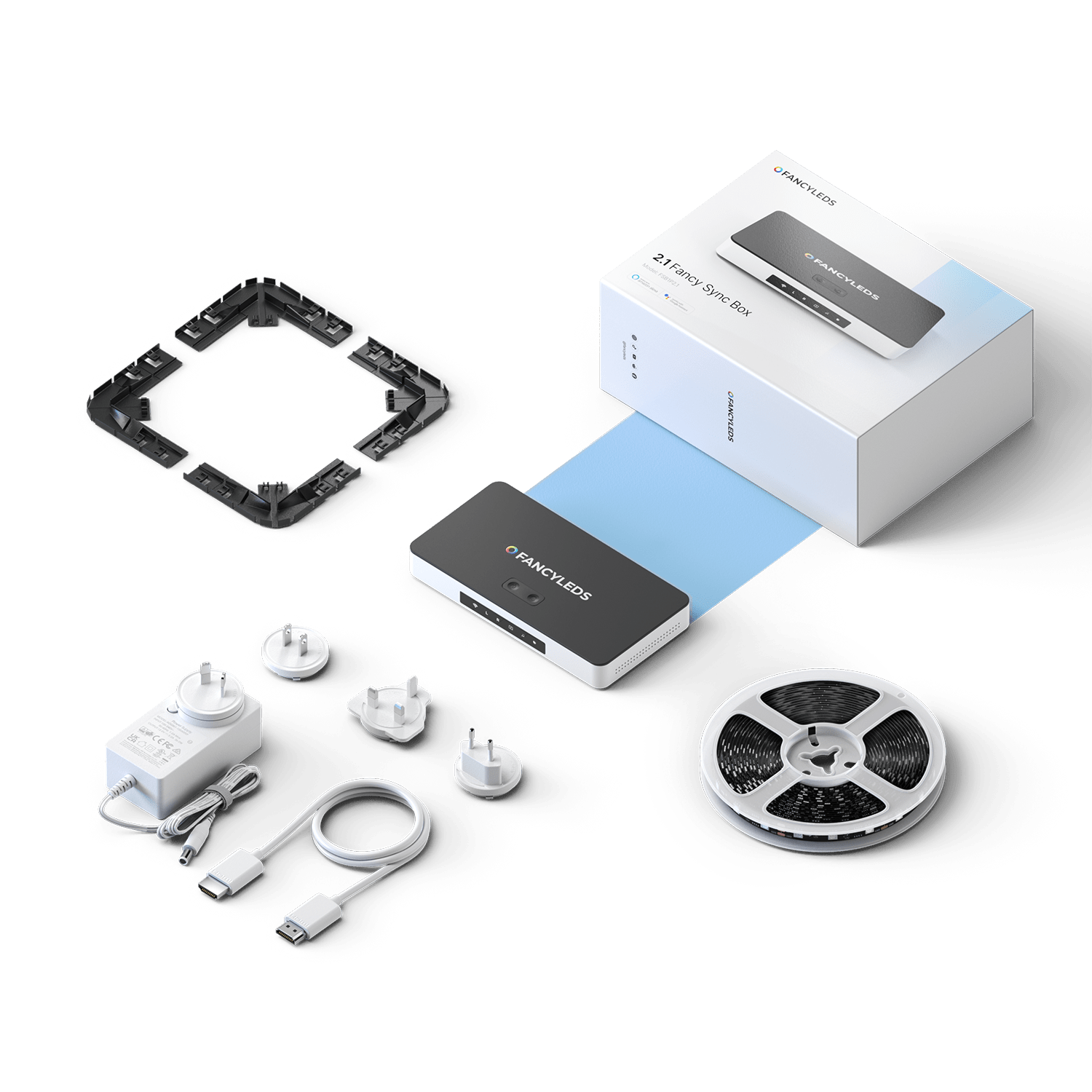 Note: The Synced Fancyleds are an additional LED accessory to be placed in your room, complementary to the Fancy Sync Box kits, which already include their own LED strip for your TV.