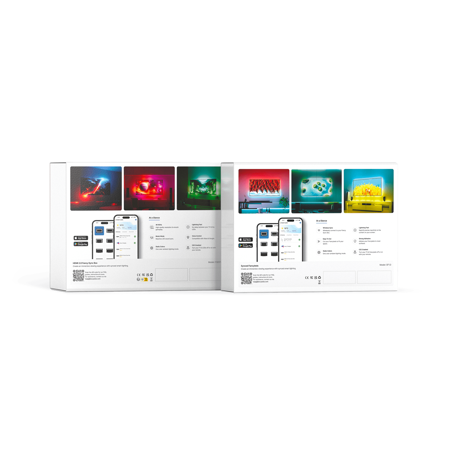 • 2.0 Fancy Sync Box: Sync your HDMI-connected devices to vibrant, responsive LEDs that mirror the content on your TV. Equipped with a separate 48 LED-per-metre strip for your TV, enjoy fast, seamless, and colorful lighting that brings your favorite movies, shows, and games to life.